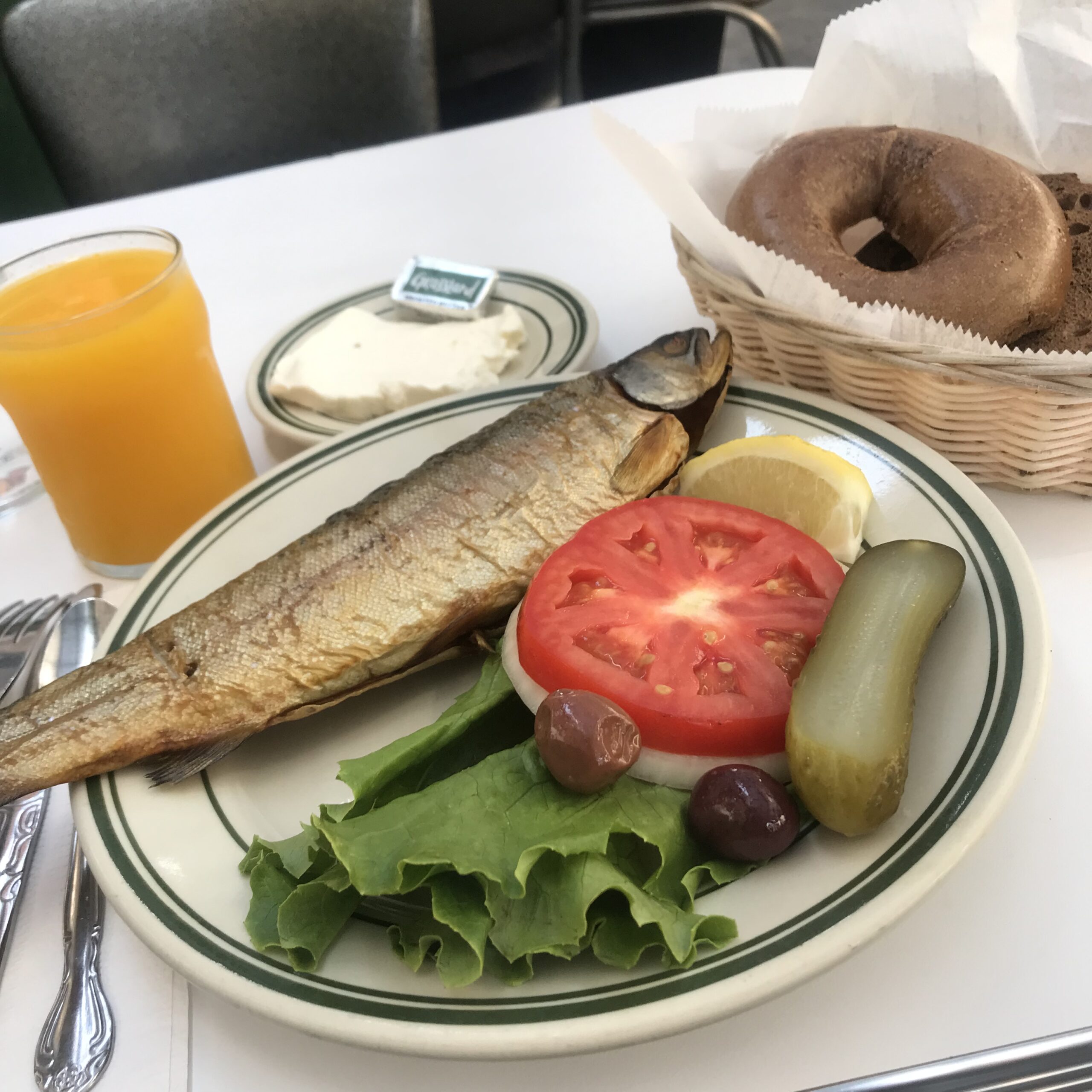 พอออกกำลังกายเสร็จแล้ว แอดจะแวะเติมโปรตีนปลาสเตอเจี้ยนรมควัน ที่ร้าน Barney Greengrass ร้านนี้อายุ100 กว่าปี เป็น iconic deli คู่เซ็นทรัลปาร์ค ดารา Tom Hanks ชอบแวะมากินหลังออกกำลังกายเสร็จ ที่ว่าเป็นตำนานร้านดังเพราะใช้เป็นฉากถ่ายหนังหลายเรื่อง